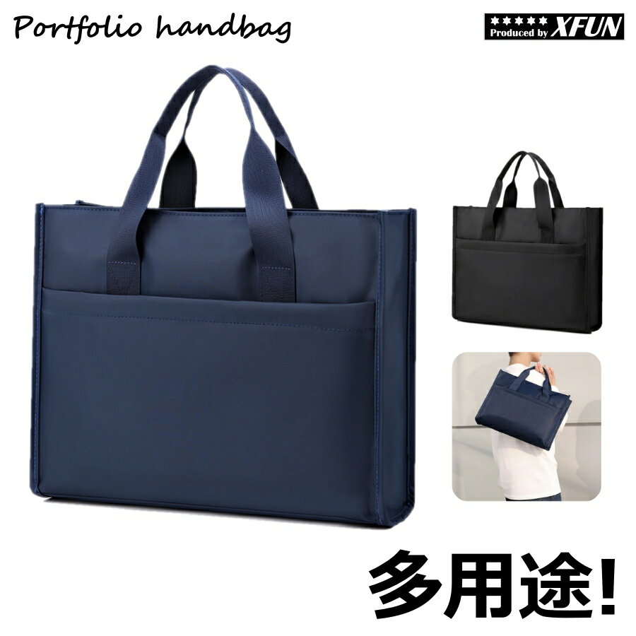 | 手提げバッグ ファスナー 軽量 ポリエステル ブリーフケース 簡易 収納 カバン 手提げタイプ 外部 ポケット搭載 持ちやすい ビジネスバッグ